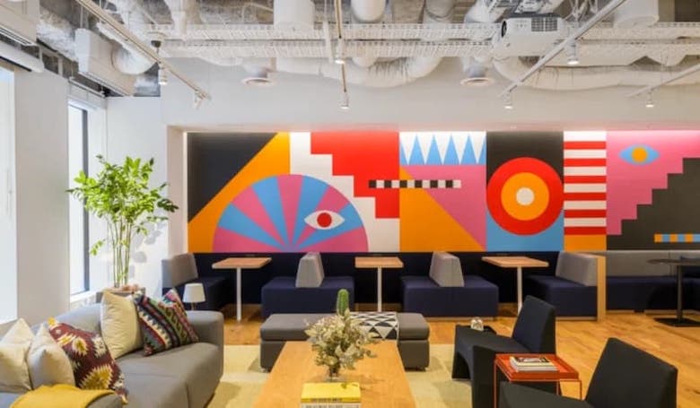 WeWork神保町は、地下鉄神保町駅から徒歩2分という好立地に位置しています。多数のアートを用いたラウンジや洗練された雰囲気は、インスピレーションを感じながら高い生産性を維持できるようデザインされています。